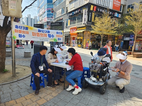 ¶ÇÇÑ ¹Î¶ô2Áö±¸ ·Îµ¥¿À°Å¸®¿¡ ‘¸¶À»ÀÇÁ¦ Á¢¼ö󒸦 ¼³Ä¡Çϰí, ÁÖÂ÷‧º¹Áö‧»ýȰ½Ã¼³ µî ¼Û»ê3µ¿¿¡¼ °³¼±ÀÌ ÇÊ¿äÇÑ »çÇ׿¡ ´ëÇØ ÁֹΠ100¿© ¸íÀÇ ÀǰßÀ» ¼ö·ÅÇß´Ù.