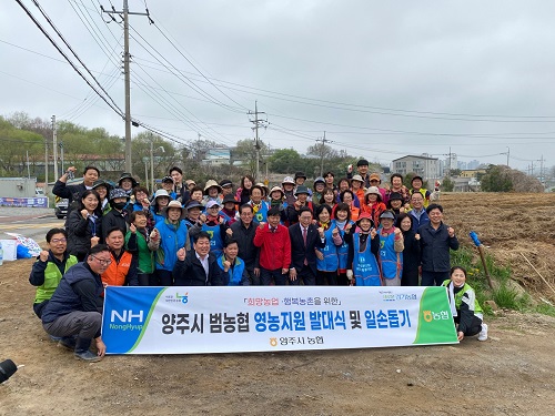 º»°ÝÀûÀÎ ¿µ³óöÀ» ¸Â¾Æ ³óÇù ¿µ³óÁö¿ø ÃÑ·ÂÀ» °áÀÇÇÏ´Â ¹ß´ë½ÄÀÌ 4¿ù18ÀÏ °¼öÇö ¾çÁÖ½ÃÀå, À±Ã¢Ã¶ ¾çÁÖ½ÃÀÇȸ ÀÇÀå, °Çý¼÷ ½ÃÀÇ¿ø, 5°³ ¾çÁֽà ³óÇù Á¶ÇÕÀå(¹é¼® ÀÌ¿ëÀç, ¾çÁÖ ¹Úµµ¿µ, ÀºÇö Á¤¼³È, ÀåÈï ÀÌÁ¾Çõ, ȸõ ¹Ú¿µ¼), ³ó°¡ÁֺθðÀÓ ¿¬ÇÕ È¸¿ø, ³ëÇö¼ö ³óÇùÁß¾Óȸ ¾çÁÖ½ÃÁöºÎÀå µî 60¿©¸íÀÌ Âü¼®ÇÑ °¡¿îµ¥ ¹é¼®À¾ °¡¾÷¸®¿¡¼ ½Ç½ÃµÆ´Ù.