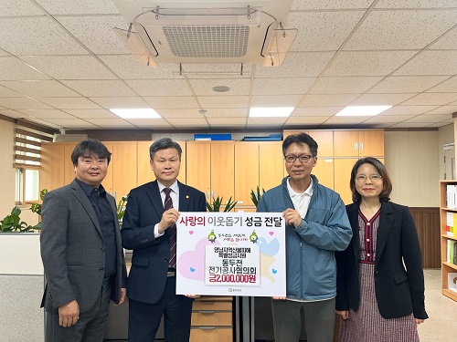µ¿µÎõ°æÂû¼±³ÅëÇàÁ¤¹ßÀüÀ§¿øÈ¸(À§¿øÀå ·ù¹Î»ó)¿Í µ¿µÎõÀü±â°ø»çÇùÀÇȸ(ȸÀå ÁøÁ¾±Ç)´Â Áö³ 18ÀÏ, ¿µ³² Áö¿ª¿¡¼ ¹ß»ýÇÑ ´ëÇü »êºÒ·Î ÇÇÇØ¸¦ ÀÔÀº ÁֹεéÀ» µ½±â À§ÇÑ ¼º±ÝÀ» ¸ð¾Æ Àü´Þ½ÄÀ» ÁøÇàÇß´Ù.