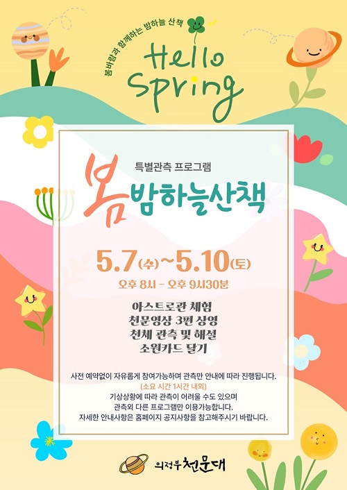 ÀÇÁ¤ºÎ°úÇеµ¼°üÀº °úÇп¡ ´ëÇÑ °ü½ÉÀ» ³ôÀ̰í õ¹®´ëÀÇ ´ëÁßȸ¦ µµ¸ðÇϰíÀÚ, 5¿ù 7ÀϺÎÅÍ 10ÀϱîÁö ÀÇÁ¤ºÎõ¹®´ë¿¡¼ Ưº°°üÃøÇà»ç ‘º½ ¹ãÇÏ´Ã »êÃ¥’À» ¿î¿µÇÑ´Ù.
