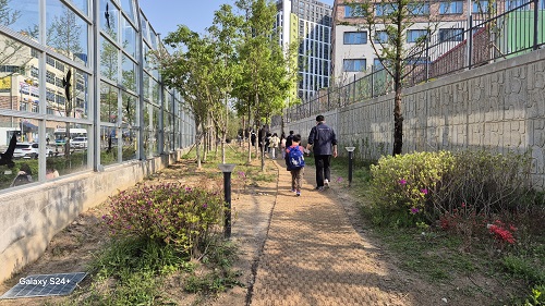 ¾çÁֽô ÀÌ °ø°£¿¡ ¾ßÀÚ¼ö ¸ÅÆ®¸¦ ±ò¾Æ º¸Çà·Î¸¦ Á¶¼ºÇϰí, º¸Çà·Î ÁÖº¯ ²É³ª¹« ½ÄÀç¿Í ÈÞ½Ä °ø°£ÀÎ º¥Ä¡, Á¶¸í¼³Ä¡ µîÀ» ÅëÇØ Çлý°ú Áö¿ªÁֹΠ¸ðµÎ°¡ °È°í ½ÍÀº ¾Æ¸§´Ù¿î »êÃ¥·Î·Î Å»¹Ù²Þ½ÃÄ×´Ù.