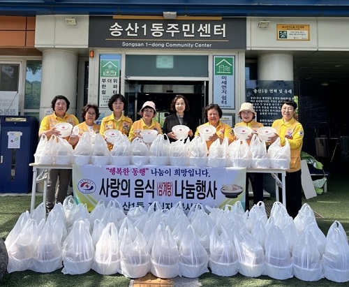 ÀÇÁ¤ºÎ½Ã ¼Û»ê1µ¿Áֹμ¾ÅÍ(µ¿Àå ±è¼ö°æ)´Â 5¿ù °¡Á¤ÀÇ ´ÞÀ» ¸Â¾Æ 4¿ù 30ÀÏ ´ëÇÑÀû½ÊÀÚ»ç ¼Û»ê1µ¿ºÀ»çȸ(ȸÀå ¹èÂù°æ)°¡ ¾î·Á¿î ÀÌ¿ôµé¿¡°Ô »ç¶ûÀÇ »ï°èÅÁ 100ÀκÐÀ» Àü´ÞÇß´Ù°í ¹àÇû´Ù.