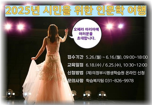 ¿À´Â 6¿ù 18Àϰú 25ÀÏ ÀÇÁ¤ºÎ À½¾Çµµ¼°ü¿¡¼ ¿ÀÆä¶ó ¾Æ¸®¾Æ¸¦ ÁÖÁ¦·Î Àι®ÇÐ °¿¬ÀÌ ¿¸°´Ù.