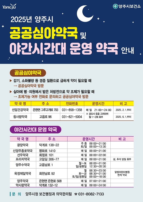 °¼öÇö ¾çÁÖ½ÃÀåÀº “°ø°ø½É¾ß¾à±¹ ¿î¿µ È®´ë´Â ½Ã¹ÎÀÇ °Ç°±ÇÀ» ÁöŰ´Â ½ÇÈ¿Àû ¼ö´ÜÀÌÀÚ ¾ß°£ ÀÇ·á °ø¹éÀ» ¸Þ¿ì±â À§ÇÑ Çʼö Á¤Ã¥ÀÌ´Ù”¸ç “¾ÕÀ¸·Îµµ ½Ã¹ÎÀÌ ¾ÈÀüÇÏ°í Æí¸®ÇÑ È¯°æ¿¡¼ ÀÇ·á ¼ºñ½º¸¦ ÀÌ¿ëÇÒ ¼ö ÀÖµµ·Ï ÇàÁ¤Àû ³ë·ÂÀ» ¾Æ³¢Áö ¾Ê°Ú´Ù”°í ¹àÇû´Ù.
