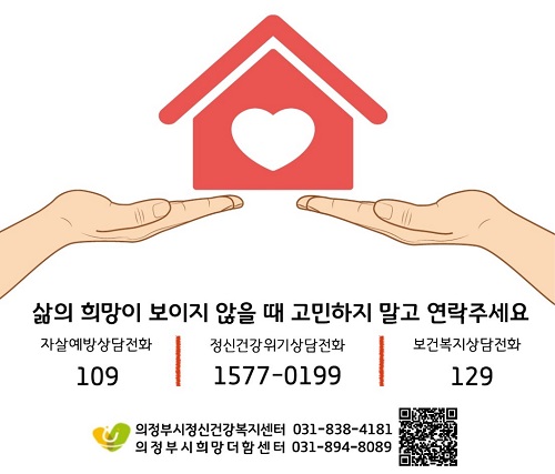 ¡Ø ¿ì¿ï°¨ µî ¸»Çϱ⠾î·Á¿î °í¹ÎÀÌ Àְųª ÁÖº¯¿¡ ÀÌ·± ¾î·Á¿òÀ» °Þ´Â °¡Á··ÁöÀÎÀÌ ÀÖÀ» °æ¿ì Àڻ쿹¹æ »ó´ãÀüÈ 109, Á¤½Å°Ç° »ó´ãÀüÈ 1577-0199, Èñ¸ÁÀÇ ÀüÈ 129, »ý¸íÀÇ ÀüÈ 1588-9191, û¼Ò³â ÀüÈ 1388, û¼Ò³â ¸ð¹ÙÀÏ »ó´ã ‘´Ù µé¾îÁÙ °³’ ¾Û, Àڻ쿹¹æ SNS»ó´ã ¸¶µé·£ µî¿¡¼ 24½Ã°£ Àü¹®°¡ÀÇ »ó´ãÀ» ¹ÞÀ» ¼ö ÀÖ½À´Ï´Ù.