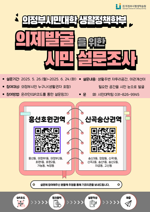 ÀÇÁ¤ºÎ½Ã´Â (Àç)ÀÇÁ¤ºÎ½ÃÆò»ýÇнÀ¿ø(ÀÌ»çÀå ±èµ¿±Ù) ÁÖ°üÀ¸·Î ‘½Ã¹ÎÂü¿©Çü ÀÇÁ¦¹ß±¼ ¼³¹®Á¶»ç’¸¦ 6¿ù 24ÀϱîÁö ½Ç½ÃÇÑ´Ù.