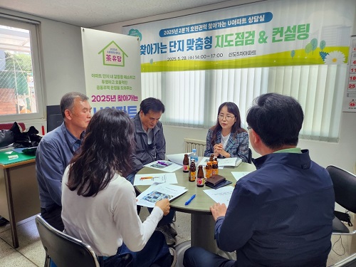 À̹ø »ó´ã½ÇÀº 5¿ù 28ÀÏ ½Åµµ5Â÷¾ÆÆÄÆ®(ȸ·æ·Î149¹ø±æ 9)¿¡¼ ¿·È´Ù. ½Ã´Â ´ÜÁö Ãø¿¡¼ ¿äûÇÑ ‘°æºñÀη ¿î¿µ’ ÁÖÁ¦¿¡ ¸ÂÃç »çÀü¿¡ ÇöÀåÀ» ½Ç»çÇÑ ÈÄ, ÀûÇÕÇÑ ¹æ¾ÈÀ» ¼³¸íÇÏ´Â ¹æ½ÄÀ¸·Î »ó´ãÀ» ÁøÇàÇß´Ù. ¶ÇÇÑ °ü·Ã ¼·ù¸¦ Á÷Á¢ Á¡°ËÇÏ¸ç °³¼±ÀÌ ÇÊ¿äÇÑ ºÎºÐ¿¡ ´ëÇØ ¸ÂÃãÇü Áöµµ¸¦ º´ÇàÇß´Ù.