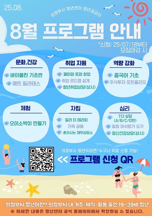 ÀÇÁ¤ºÎ½Ã(½ÃÀå ±èµ¿±Ù) û³â¼¾ÅÍ Ã»³â°ø°¨ÅÍ´Â 7¿ù 18ÀϺÎÅÍ 8¿ù ÇÁ·Î±×·¥¿¡ Âü¿©ÇÒ Ã»³âÀ» ¸ðÁýÇÑ´Ù.