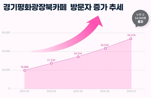 °æ±âÆòȱ¤Àå ºÏÄ«ÆäÀÇ ´©Àû ¹æ¹®ÀÚ ¼ö´Â ²ÙÁØÈ÷ Áõ°¡¼¼¸¦ º¸À̰í ÀÖ´Ù. 3¿ù 19,989¸í, 4¿ù 27,330¸í, 5¿ù 34,534¸í, 6¿ù 43,530¸í, 7¿ù¿¡´Â ÃÑ 5¸¸ 4õ216¸íÀ» µ¹ÆÄÇØ, ºÏÄ«Æä°¡ µµ¹Î »ýȰ ¼Ó ´ëÇ¥ÀûÀÎ ¹®È°ø°£À¸·Î ÀÚ¸® Àâ°í ÀÖÀ½À» º¸¿©ÁØ´Ù.