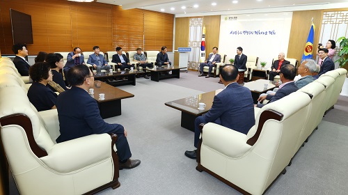 °æ±âµµÀÇȸ °Ç¼³±³ÅëÀ§¿øÈ¸ ÀÌ¿µÁÖ ÀÇ¿ø(±¹¹ÎÀÇÈû, ¾çÁÖ1)Àº 9¿ù 9ÀÏ °æ±âµµÀÇȸ ÀÇÀå½Ç¿¡¼ ±èÁø°æ ÀÇÀåÀ» Á¢°ßÇÏ°í °£´ãȸ¸¦ °¡Áø µÚ, ¼ö¿ø½Ã ¿¬ÈÀåÀ» ¹æ¹®ÇØ Àå»ç½Ã¼³ ¿î¿µ ÇöȲÀ» ûÃëÇß´Ù.