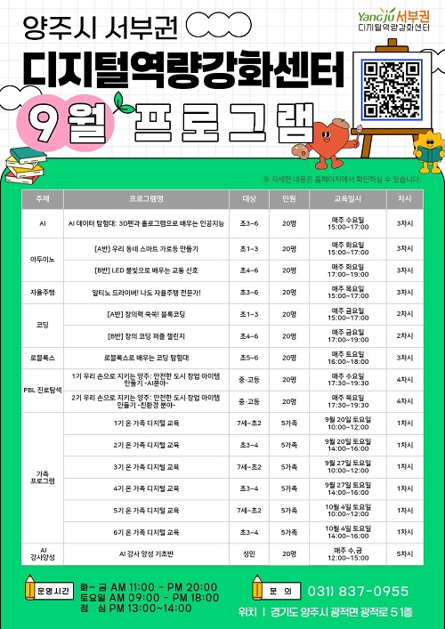 ¼¾ÅÍ¿¡¼´Â ¡ã¾ÆµÎÀ̳븦 Ȱ¿ëÇÑ ½º¸¶Æ® °¡·Îµî ¸¸µé±â ¡ã·Îºí·Ï½º·Î ¹è¿ì´Â ÄÚµùŽÇè´ë µî ÃʵîÇлý ´«³ôÀÌ¿¡ ¸ÂÃá âÀÇÀ¶ÇÕÇü ÇÁ·Î±×·¥À» ¿î¿µÇÑ´Ù. ¶ÇÇÑ ¼ºÀÎÀ» À§ÇÑ AI °»ç ¾ç¼º°úÁ¤ µî ¿¬·Éº° ¸ÂÃã ÇÁ·Î±×·¥µµ ¸¶·ÃÇØ ³²³à³ë¼Ò ´©±¸³ª µðÁöÅÐ ÇнÀ¿¡ Âü¿©ÇÒ ¼ö ÀÖµµ·Ï Çß´Ù.