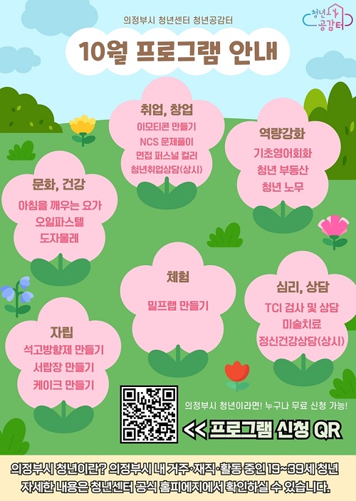ÀÇÁ¤ºÎ½Ã û³â¼¾ÅÍ Ã»³â°ø°¨ÅÍ(ÀÌÇÏ Ã»³â¼¾ÅÍ)´Â 9¿ù 19ÀϺÎÅÍ 10¿ù ÇÁ·Î±×·¥¿¡ Âü¿©ÇÒ Ã»³âÀ» ¸ðÁýÇÑ´Ù.