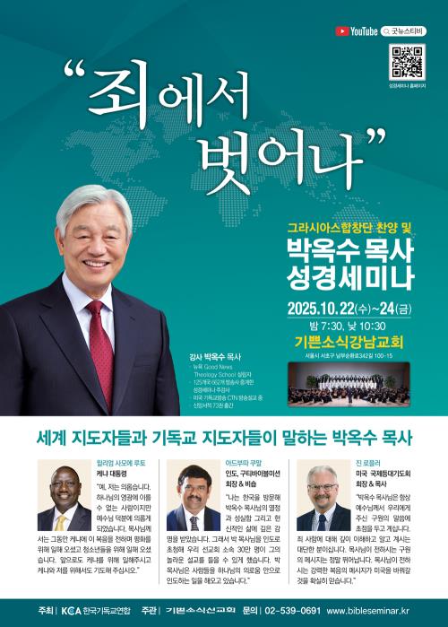 Çѱ¹±âµ¶±³¿¬ÇÕ(KCA) ÁÖÃÖ, ±â»Û¼Ò½Ä¼±±³È¸ ÁÖ°üÀ¸·Î ÁøÇàµÇ´Â ¹Ú¿Á¼ö ¸ñ»ç ¼º°æ¼¼¹Ì³ªÀÇ ÁÖÁ¦´Â ‘ÁË¿¡¼ ¹þ¾î³ª’ÀÌ´Ù.
