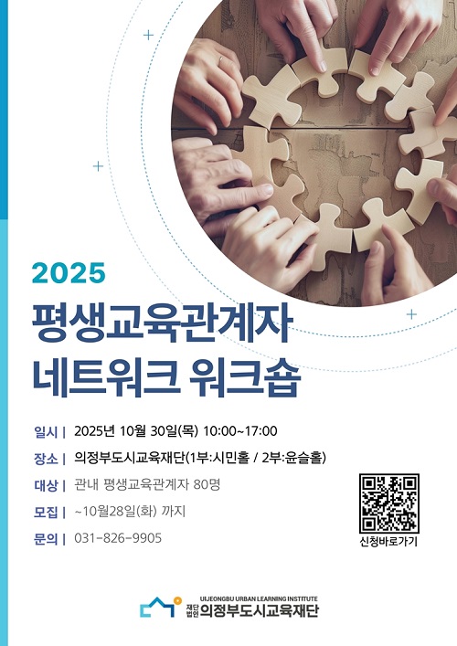 ¿öÅ©¼ó Âü¿©ÀÚ ¸ðÁýÀº 10¿ù 13ÀϺÎÅÍ 28ÀϱîÁöÀ̰í ÀÇÁ¤ºÎ½Ã Æò»ýÇнÀÅëÇÕÇ÷§Æû(learning.ull.or.kr)À» ÅëÇØ ½Åû °¡´ÉÇϸç, ±³À° ¹®ÀÇ´Â ÀÇÁ¤ºÎµµ½Ã±³À°Àç´Ü µµ½Ã±³À°ÀÚ¿ø±¸ÃàÆÀ(031-826-9905)À¸·Î ÇÏ¸é µÈ´Ù.