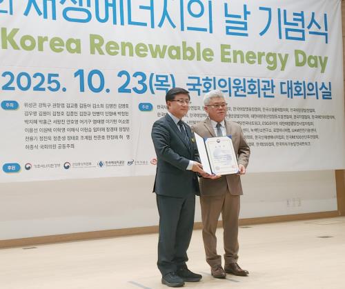 ¾çÁֽà ¼ÒÀç ¢ß¸íǰ¿¡³ÊÁöÄÚ¸®¾Æ ¹Ú±¤¹Î ´ëÇ¥À̻簡 10¿ù23ÀÏ ¼¿ï ¿©Àǵµ ±¹È¸ÀÇ¿øÈ¸°ü¿¡¼ ¿¸° ‘Á¦7ȸ Àç»ý¿¡³ÊÁöÀÇ ³¯’ ±â³ä½Ä¿¡¼ ±âÈÄ¿¡³ÊÁöȯ°æºÎ Àå°ü ǥâÀ» ¹Þ¾Ò´Ù.
