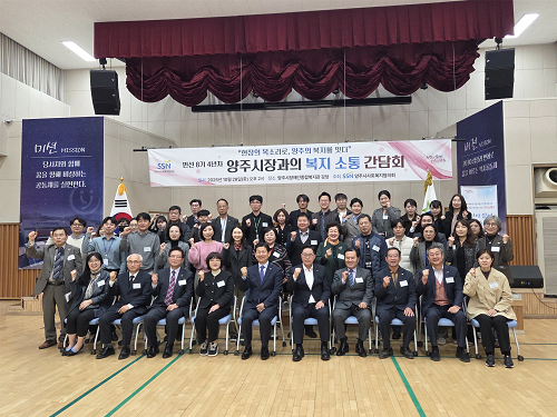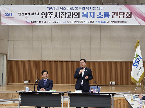 ¾çÁֽûçȸº¹ÁöÇùÀÇȸ(ȸÀå Ȳ»ê)´Â 10¿ù 28ÀÏ ¾çÁÖ½ÃÀå¾ÖÀÎÁ¾ÇÕº¹Áö°ü °´ç¿¡¼ ‘¹Î¼±8±â 4³âÂ÷ ¾çÁÖ½ÃÀå°úÀÇ º¹Áö ¼ÒÅë °£´ãȸ’¸¦ °³ÃÖÇß´Ù.