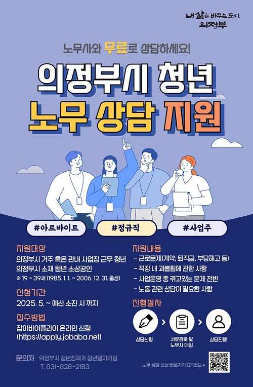 ÀÇÁ¤ºÎ½Ã(½ÃÀå ±èµ¿±Ù)´Â û³âµéÀÇ ±Ù·Î±ÇÀÍ º¸È£¿Í °Ç°ÇÑ ³ëµ¿È¯°æ Á¶¼ºÀ» À§ÇØ ‘ã¾Æ°¡´Â û³â ³ë¹«»ç »ó´ã'À» ¿î¿µÇÑ´Ù.