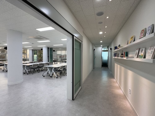 ¸®¸ðµ¨¸µµÈ °ø°£Àº ÈÀÌÆ®Åæ ÀÎÅ׸®¾î¿Í °³¹æÇü ±¸Á¶¸¦ µµÀÔÇØ ¹à°í ¼¼·ÃµÈ ºÐÀ§±â·Î Å»¹Ù²ÞÇß´Ù. ƯÈ÷ û¼Ò³â °øºÎ¹æÀº 18¼® ±Ô¸ðÀÇ ¿¶÷½Ç°ú °³¹æÇü ÀÚÀ¯ÇнÀ°ø°£À¸·Î ²Ù¸çÁ³À¸¸ç, Á¶µµ Á¶ÀýÀÌ °¡´ÉÇÑ Á¶¸í, ÀÎü°øÇÐÀû °¡±¸, ¹«¼± ÀÎÅÍ³Ý µî ÇнÀ ÆíÀǽü³À» °®Ãç û¼Ò³âÀº ¹°·Ð ½Ã¹Î ¸ðµÎ°¡ ÄèÀûÇÑ È¯°æ¿¡¼ ÇнÀ¿¡ ÁýÁßÇÒ ¼ö ÀÖµµ·Ï Çß´Ù.