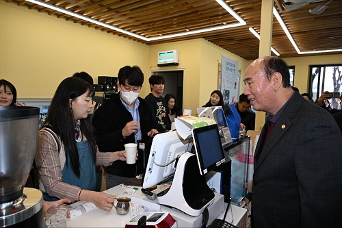 µ¿µÎõ½Ã(½ÃÀå ¹ÚÇü´ö)°¡ °ü³» ÇлýµéÀÇ ±Û·Î¹ú Áø·Î Ž»öÀ» Áö¿øÇϱâ À§ÇØ ÃßÁø ÁßÀÎ ‘2025³â ²ÞÀÌ·ë µ¿¾Æ¸®’ »ç¾÷ÀÇ ÀÏȯÀ¸·Î, Çѱ¹¹®È¿µ»ó°íµîÇб³ KCM BARISTA µ¿¾Æ¸®°¡ 12¿ù 5ÀÏ µ¿µÎõ½Ãû ¾Õ ÇÞ»ìÄ«Æä¿¡¼ ÀÏÀÏÄ«Æä¸¦ ¿î¿µÇß´Ù.