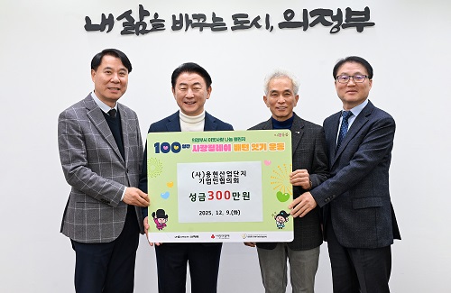 ÀÇÁ¤ºÎ½Ã(½ÃÀå ±èµ¿±Ù)´Â 12¿ù 9ÀÏ ©Å¿ëÇö»ê¾÷´ÜÁö ±â¾÷ÀÎÇùÀÇȸ(ȸÀå ±èÁ¤ÀÎ)°¡ ‘100Àϰ£ »ç¶û¸±·¹ÀÌ ¹èÅÏ ÀձⒿ¡ µ¿ÂüÇØ Áö¿ª ³» Ãë¾à°èÃþ Áö¿øÀ» À§ÇÑ ¼º±Ý 300¸¸ ¿øÀ» ±âŹÇß´Ù°í ¹àÇû´Ù.