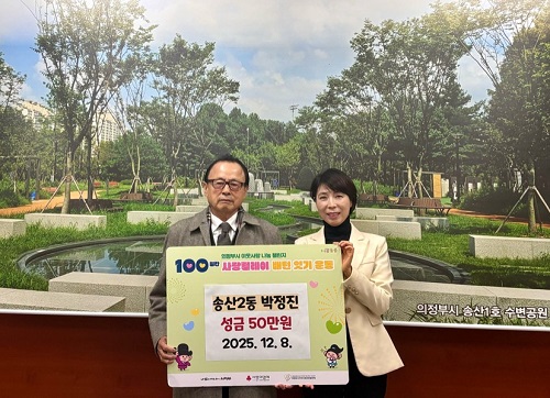 ÀÇÁ¤ºÎ½Ã ¼Û»ê2µ¿Áֹμ¾ÅÍ(µ¿Àå Ȳº¸°æ)´Â 12¿ù 8ÀÏ Áö¿ª ÁֹΠ¹ÚÁ¤Áø ¾¾°¡ Ãë¾à°èÃþ Áö¿øÀ» À§ÇØ ¼º±Ý 50¸¸ ¿øÀ» ±âŹÇÏ¸ç ‘100Àϰ£ »ç¶û¸±·¹ÀÌ ¹èÅÏ ÀձⒿ¡ µ¿ÂüÇß´Ù°í ¹àÇû´Ù.