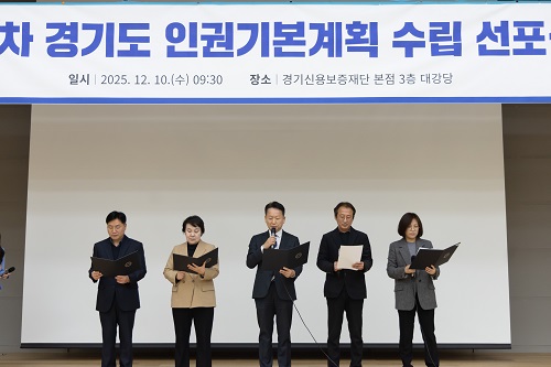 °æ±âµµ´Â 10ÀÏ °æ±â½Å¿ëº¸ÁõÀç´Ü ´ë°´ç¿¡¼ ¼¼°èÀαǼ±¾ð 77ÁÖ³âÀ» ±â³äÇÑ ‘Á¦3Â÷ °æ±âµµ ÀαǺ¸Àå ¹× ÁõÁø ±âº»°èȹ’ ¼±Æ÷½ÄÀ» ¿°í ÇâÈÄ 5³â°£ ÃßÁøÇÒ ÀαÇÁ¤Ã¥ÀÇ Ã»»çÁøÀ» µµ¹Î°ú °øÀ¯Çß´Ù. ¼±Æ÷½Ä¿¡´Â °í¿µÀÎ °æÁ¦ºÎÁö»ç¿Í Á¤Ãá¼÷ °æ±âµµ ÀαÇÀ§¿øÈ¸ À§¿øÀå ¹× À§¿ø, ÀαǴÜü °ü°èÀÚ, µµ¹Î µî 50¿© ¸íÀÌ Âü¼®Çß´Ù.