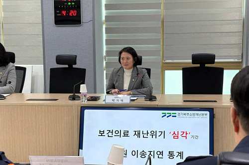 ´õºÒ¾î¹ÎÁÖ´ç ¹ÚÁöÇý ÀÇ¿ø(ÀÇÁ¤ºÎ½Ã°©)Àº 1¿ù 27ÀÏ °æ±âºÏºÎ ¼Ò¹æÀ糺»ºÎ¸¦ ¹æ¹®ÇØ, À̸¥¹Ù ‘ÀÀ±Þ½Ç »±»±ÀÌ’·Î ºÒ¸®´Â ÀÀ±ÞȯÀÚ ÀÌ¼Û Áö¿¬ ¹®Á¦ÀÇ ÇØ°á ¹æ¾ÈÀ» ¸ð»öÇϱâ À§ÇÑ ÇöÀå°£´ãȸ¸¦ °³ÃÖÇß´Ù.
