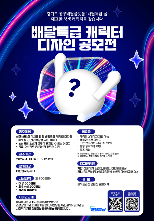 °æ±âµµÁÖ½Äȸ»ç°¡ ¿À´Â 5¿ù 12ÀϱîÁö °ø°ø¹è´Þ¾Û ¹è´ÞƯ±ÞÀÇ Ä³¸¯ÅÍ µðÀÚÀÎÀ» °ø°³ ¸ðÁýÇÑ´Ù.
