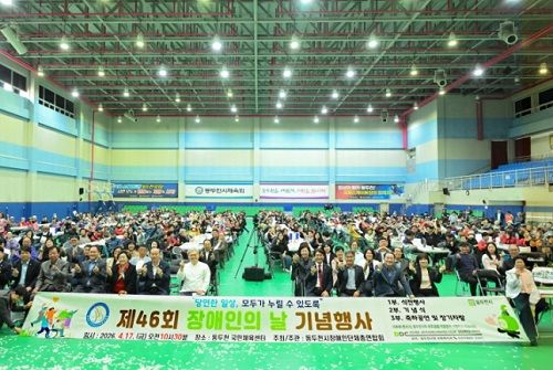 µ¿µÎõ½Ã´Â Áö³­ 4¿ù 17ÀÏ ±¹¹ÎüÀ°¼¾ÅÍ¿¡¼­ Á¦46ȸ Àå¾ÖÀÎÀÇ ³¯ ±â³ä½ÄÀ» °³ÃÖÇß´Ù.