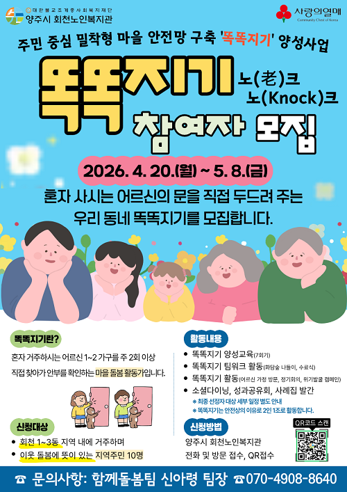 ´ëÇѺұ³Á¶°èÁ¾»çȸº¹ÁöÀç´Ü ¾çÁֽà ȸõ³ëÀκ¹Áö°üÀº »çȸº¹Áö°øµ¿¸ð±Ýȸ 2026³â ¹èºÐ»ç¾÷ °ø¸ð¿¡ ¼±Á¤µÅ µ¶°Å¾î¸£½Å °í¸³ ¿¹¹æÀ» À§ÇÑ ÁֹΠÁ᫐ ¹ÐÂøÇü ¸¶À» ¾ÈÀü¸Á ±¸Ãà»ç¾÷ ‘³ë(ÖÕ)Å© ³ë(Knock)Å©’¸¦ ÃßÁøÇÑ´Ù°í ¹àÇû´Ù.