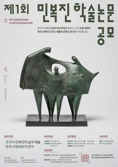 À̹ø °ø¸ð´Â (»ç)Çѱ¹±ÙÇö´ë¹Ì¼ú»çÇÐȸ(ȸÀå Á¶¼öÁø)¿Í °øµ¿À¸·Î ÃßÁøµÇ¸ç, Á¶°¢°¡ ¹Îº¹ÁøÀÇ »î°ú ¿¹¼ú ¹× Çѱ¹ ±ÙÇö´ëÁ¶°¢À» ÁÖÁ¦·Î ÇÑ ¿¬±¸¸¦ ´ë»óÀ¸·Î ÇÑ´Ù. Áö¿ø ÀÚ°ÝÀº ¼®»ç ÇÐÀ§ ÀÌ»óÀ¸·Î, ´Üµ¶ ¶Ç´Â °øµ¿¿¬±¸(3ÀÎ À̳») ÇüÅ·ΠÂü¿©ÇÒ ¼ö ÀÖ´Ù.