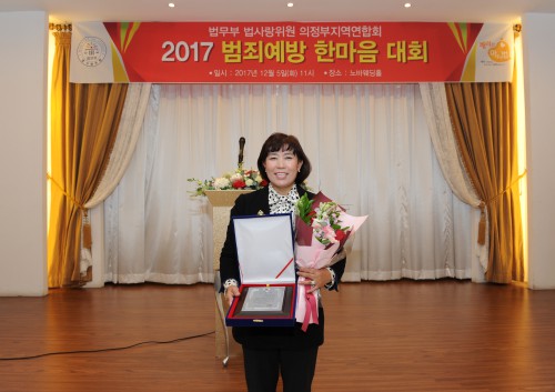¾çÁÖ½ÃÀÇȸ ¹Ú°æ¼ö ÀÇ¿øÀÌ 12¿ù5ÀÏ ¹ý¹«ºÎ ¹ý»ç¶ûÀ§¿ø ÀÇÁ¤ºÎÁö¿ª¿¬ÇÕȸ¿Í Àç´Ü¹ýÀÎ ÇѺÏÀåÇÐÀç´ÜÀÌ ÁÖ°üÇϰí ÀÇÁ¤ºÎÁö¹æ°ËÂûûÀÌ ÈÄ¿øÇÏ´Â ‘2017 ¹üÁË¿¹¹æ ÇѸ¶À½´ëȸ’¿¡¼ ¹ý¹«ºÎÀå°ü ǥâÀ» ¼ö»óÇß´Ù.