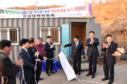 3¿ù8ÀÏ µ¿µÎõ½Ã ÁöÇൿ Á¦»ýº´¿ø ÁøÀÔ·Î ¾Õ¿¡¼´Â ÃÖ¿ë´ö ½ÃÀå, ±è¼º¿ø ±¹È¸ÀÇ¿ø, À¯ÁøÇö ´õºÒ¾î¹ÎÁÖ´ç µ¿µÎõÁö¿ªÀ§¿øÈ¸ À§¿øÀå, ±èµ¿Ã¶ °æ±âµµÀÇ¿ø, ¹ÚÇü´ö Àü °æ±âµµÀÇ¿ø, ÇÑÁ¾°©·À̰æÅ·¾ç¼øÁ¾ »çȸ´ÜüÀå µî 100¿©¸íÀÌ Âü¼®ÇÑ °¡¿îµ¥ Á¦»ýº´¿ø °³¿øÀ» Ã˱¸ÇÏ´Â ºñ»ó´ëÃ¥À§¿øÈ¸(À§¿øÀå ½É¿ìÇö) Àӽà »ç¹«½Ç ÇöÆÇ½ÄÀÌ ÁøÇàµÆ´Ù.