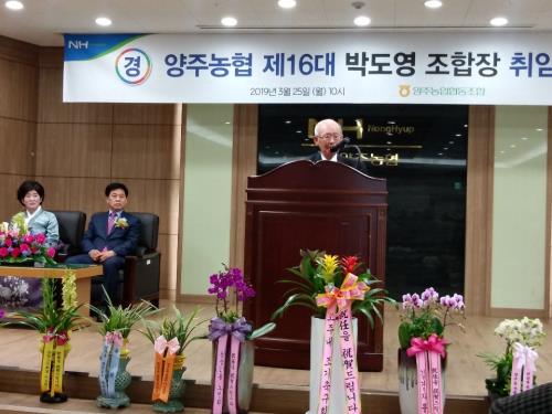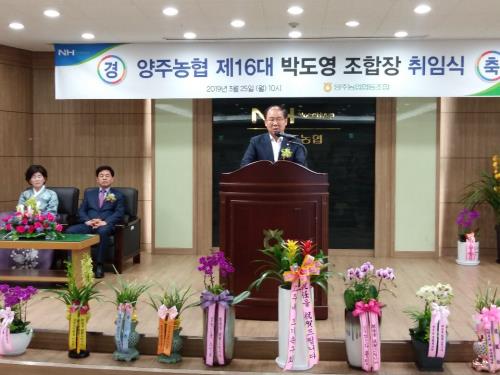 ¾çÁֽà ¾çÁÖ³óÇùÀº 3¿ù25ÀÏ ¿ÀÀü 10½Ã ´öÇöÁöÁ¡ 5Ãþ ´ëȸÀǽǿ¡¼ Á¦16´ë ¹Úµµ¿µ Á¶ÇÕÀåÀÇ ÃëÀÓ½ÄÀ» ¼ÒÅ»ÇÏ°Ô ÁøÇàÇß´Ù.