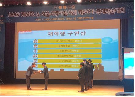 ½ÅÇÑ´ëÇб³(ÃÑÀå ¼°©¿ø) ¹æ»ç¼±Çаú(ÇаúÀå ±èÈ£¼º ±³¼ö)´Â Áö³ 3¿ù14~17ÀÏ ¼¿ï COEX Àü½ÃÀå¿¡¼ °³ÃÖµÈ 2019 KIMES & ¼¿ï½Ã ¹æ»ç¼±»çȸ Á¦54Â÷ ±¹Á¦Çмú´ëȸ¿¡¼ ¹æ»ç¼±Çаú ÀçÇлýÀÌ °¢°¢ ÃÖ¿ì¼ö ³í¹®»ó°ú ÀçÇлý ±¸¿¬»óÀ» ¼ö»óÇß´Ù°í ¹àÇû´Ù.