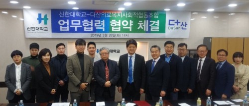 ½ÅÇÑ´ëÇб³(ÃÑÀå ¼°©¿ø)´Â Áö³ 3¿ù26ÀÏ (ÁØ)´Ù»êÀǷẹÁö»çȸÀûÇùµ¿Á¶ÇÕ(ÀÌ»çÀå ±èº´ÅÂ)°ú Çлý°ú ±³Á÷¿øµéÀÇ °Ç°°ü¸®¿Í °Ç°ÁõÁøÀ» À§ÇÑ Çù¾àÀ» ü°áÇß´Ù.