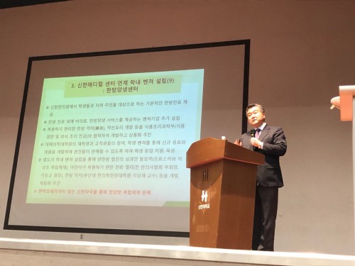 ¹«¾ùº¸´Ùµµ ÇлýµéÀº Çб³¿¡ °³¼³µÈ ±³°ú¸ñ°ú ÇаúµéÀ» Áß½ÉÀ¸·Î '½ÅÇѸ޵ðÄü¾ÅÍ'¸¦ Ȱ¿ëÇÏ¿© ºäƼÄɾî(Beauty care) ȸ»ç, ¸ÞµðÄà ÇÇÆ®´Ï½º(Medical Fitness) ȸ»ç, º´¿ø ¿î¿µ Áö¿øÈ¸»ç(MSO), ÇØ¿Ü ¹ßÁÖ Ä¡±â°ø Á¦ÀÛȸ»ç, üÇü ÃøÁ¤ ¹× üÇüÃøÁ¤ °ü·Ã ȸ»ç, ¹æ¹®°£È£¼¾ÅÍ µî ¾à 14°³ÀÇ º¸°ÇÀÇ·á °ü·Ã °¢Á¾ º¥Ãıâ¾÷µéÀÌ Ã¢¾÷µÉ ¿¹Á¤À̸ç ÀÌµé ±â¾÷Àº ±³¼ö¿Í ÇлýµéÀÌ Âü¿©ÇÏ´Â Çг» º¥Ã³ ¹× Çлý â¾÷À¸·Î ÁøÇàµÉ °ÍÀ̶ó´Â º¸°í¿¡ Àû±ØÀûÀΠȯ¿µÀ» Ç¥¸íÇϸç ÀÚ¹ßÀûÀÎ Âü¿© ÀÇÁö¸¦ ¹àÈ÷´Â µî Àå³» ¿±â°¡ ¶ß°Å¿ü´Ù.