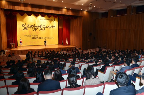 ÇÑÆí, ÀÌÀçÁ¤ ±³À°°¨Àº ¿ÀÈÄ 3½Ã ¾È»ê ȶûÀ¯¿øÁö¿¡¼ ¿¸®´Â ‘4.16 ¼¼¿ùÈ£ Âü»ç 5Áֱ⠱â¾ï½Ä’¿¡ Âü¼®ÇØ ¼¼¿ùÈ£ Èñ»ýÀÚµéÀ» Ã߸ðÇß´Ù.