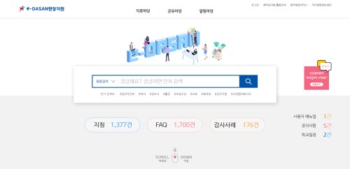 ‘e-DASANÇöÀåÁö¿ø’Àº Çб³ ÇöÀå¾÷¹«(±³¹«Çлç, ÇàÁ¤/ÀÏ¹Ý ºÐ¾ß)¿¡ ´ëÇÑ ±Ã±ÝÁõÀ» ¸ÂÃãÇüÀ¸·Î Áö¿øÇØ ÇàÁ¤¾÷¹« °æ°¨°ú Çб³ ÀÚÀ²°æ¿µÀ» µ½´Â ¿Â¶óÀÎ ½Ã½ºÅÛÀ¸·Î µµ±³À°Ã»Àº Áö±Ý±îÁö Áú¹®´äº¯(FAQ)À» Á¦¿ÜÇÑ ¾÷¹«Áöħ°ú °¨»ç»ç·Ê¸¦ ÀϹݿ¡ °ø°³ÇؿԴÙ.