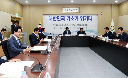 ÀÌ¾î¼ ±¹°¡±âÈÄȯ°æÈ¸ÀÇ ¹Ý±â¹® À§¿øÀåÀÇ ÁÖÀç·Î ¿ÀÂù°£´ãȸ°¡ ¿·È´Ù. °£´ãȸ¿¡¼´Â ¹Ì¼¼¸ÕÁö Á¤Ã¥ ÃßÁø °úÁ¤¿¡¼ µµÃâµÈ Áö¹æÀÚÄ¡´ÜüÀÇ ¾Ö·ÎÁ¡°ú °ÇÀÇ »çÇ×À» µè°í ÀÌ¿¡ °üÇØ ³íÀÇÇÏ´Â ½Ã°£À» °¡Á³´Ù.
