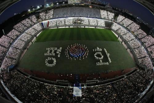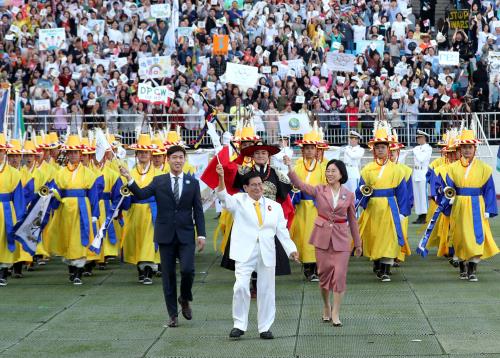 9¿ù18ÀÏ ¼ö¿ø¿ùµåÄŰæ±âÀå¿¡¼ ¿¸° ¸ÞÀÎÇà»ç¿¡´Â ‘We are one!’À̶ó´Â ÁÖÁ¦ÀÇ °³È¸ ÆÛÆ÷¸Õ½º¿Í ´õºÒ¾î 5õ400¿©¸íÀÌ Âü¿©ÇÑ ÃÊ´ëÇü Ä«µå¼½¼Ç, ¹Ìµð¾î ÆÄ»çµå, ´ëµ¿Á¦ µî ÆòÈÀÇ ÃàÁ¦¸¦ ¼±º¸¿´´Ù.