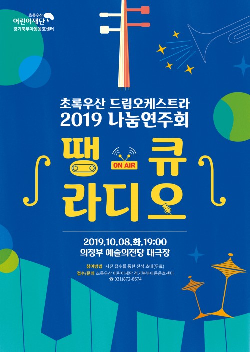 ÃÊ·Ï¿ì»ê¾î¸°ÀÌÀç´Ü °æ±âºÏºÎ¾Æµ¿¿ËÈ£¼¾ÅÍ(¼ÒÀå Àü¼ºÈ£)¿¡¼´Â ¿À´Â 10¿ù 8ÀÏ ¿ÀÈÄ 7½Ã ÀÇÁ¤ºÎ¿¹¼úÀÇÀü´ç ´ë±ØÀå¿¡¼ ÃÊ·Ï¿ì»êµå¸²¿ÀÄɽºÆ®¶ó 2019 ³ª´®¿¬ÁÖȸ ‘¶¯Å¥, ¶óµð¿À’¸¦ °³ÃÖÇÑ´Ù.
