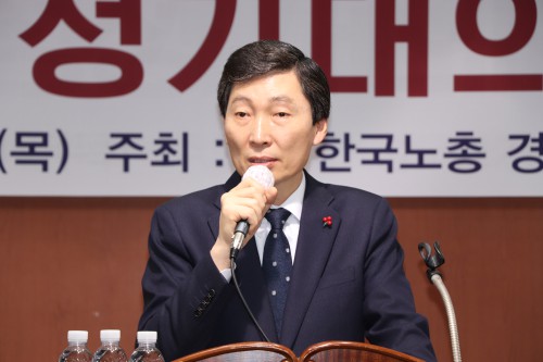 ÇÑÆí, ±è ¿¹ºñÈ帴 ÀÇÁ¤ºÎÁ¦ÀϽÃÀå ¹æ¹®À» ¸¶Ä¡°í Çѱ¹³ëÃÑ °æ±âÁߺÎÁöºÎ Á¦38³â Â÷ Á¤±â´ëÀÇ¿ø´ëȸ¿¡ Âü¼®ÇØ “³ëµ¿Àº ¿ì¸® ¸ðµÎÀÇ »î°ú Á÷°áµÈ ¹®Á¦”¶ó¸ç, “³ëµ¿ÀÇ °¡Ä¡°¡ Á¦´ë·Î Á¸Áß¹Þ°í ³ëµ¿ÀÚÀÇ ±ÇÀÍÀÌ º¸È£µÇ´Â »çȸ°¡ µÇ¾î¾ß ÇÑ´Ù.”°í ¸»Çß´Ù.