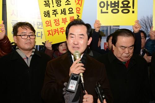 ´õºÒ¾î¹ÎÁÖ´ç ÀÇÁ¤ºÎ°© ½Ã·µµÀÇ¿øµéÀÌ Áß¾Ó´çÀÇ Àü·«°øÃµ ¹æÄ§À» ¹Ý´ëÇϸç ÇöÀç À¯ÀÏÇÑ ±¹È¸ÀÇ¿ø ¿¹ºñÈĺ¸ÀÎ Àå¼öºÀ(60) Àü ÀÇÁ¤ºÎ½ÃÀÇ¿øÀ» Áö¿ø»ç°ÝÇÏ´Â ¸ð¾ç»õ¸¦ º¸À̰í ÀÖ´Ù.