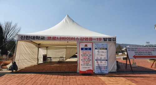 ½ÅÇÑ´ë´Â ¶Ç Äڷγª 19ÀÇ Ä·ÆÛ½º È®»êÀ» ¸·±â À§ÇØ ±³³» ¸¶½ºÅ© Âø¿ëÀ» ±Ç°í¿¡¼ Àǹ«»çÇ×À¸·Î º¯°æÇÑ µ¥ À̾î Áß¾Óµµ¼°ü, Çлýȸ½Ç, µ¿¾Æ¸®¹æ µî ÇлýȰµ¿ °ø°£À» Àü¸é Æó¼âÇϰí Äڷγª 19 ´ëÀÀ ¿µ»óÀ» Á¦ÀÛ, ȨÆäÀÌÁö¿¡ °ÔÀçÇß´Ù. ¾Æ¿ï·¯ Ä·ÆÛ½º ÀÔ±¸¿¡ ¹ß¿ °¨½Ã ½Ã½ºÅÛ°ú ¼¿ÇÁ ü¿ÂÃøÁ¤½ÇÀ» ¿î¿µ, ¹ß¿ ÀÌ»óÀÚ°¡ È®À뵃 °æ¿ì ÀÌ»óÀÚ°¡ ±Ù¹«ÇÏ´Â ÇØ´ç °Ç¹°À» Æó¼â Á¶Ä¡Çϰí Áúº´°ü¸®º»ºÎ¿Í °øµ¿´ëÀÀÇϱâ·Î Çß´Ù.