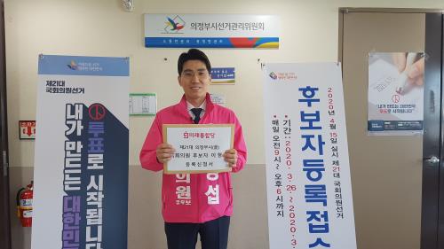 ÀÌÇü¼·(40) ¹Ì·¡ÅëÇÕ´ç ÀÇÁ¤ºÎÀ» ±¹È¸ÀÇ¿ø È帴 3¿ù26ÀÏ ¼±°üÀ§¿¡ Èĺ¸ µî·ÏÀ» ÇÑ µÚ ‘½Ã¹Î Çູ °ø¾à’À» ¹ßÇ¥Çß´Ù.