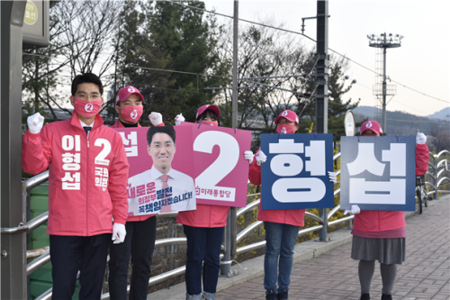 ÀÌÇü¼·(40) ¹Ì·¡ÅëÇÕ´ç ÀÇÁ¤ºÎÀ» ±¹È¸ÀÇ¿ø È帴 °ø½Ä ¼±°Å¿îµ¿ °³½ÃÀÏÀÎ 4¿ù2ÀÏ ÇöÃæÅ¾ Âü¹è¸¦ ½ÃÀÛÀ¸·Î º»°ÝÀûÀÎ ¼±°Å¿îµ¿¿¡ ³ª¼¹´Ù.