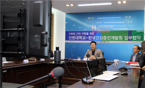 ½ÅÇÑ´ëÇб³(ÃÑÀå °¼ºÁ¾)´Â Áö³ 20ÀÏ »çȸÀû °¡Ä¡ ±¸Çö°ú °Ç°ÁõÁø»ç¾÷ ºÐ¾ßÀÇ Çù·ÂÀ» À§ÇØ º¸°Çº¹ÁöºÎ »êÇÏ °ø°ø±â°üÀÎ Çѱ¹°Ç°ÁõÁø°³¹ß¿ø(¿øÀå Á¶Àμº)°ú ¾÷¹«Çù¾à(MOU)À» ü°áÇß´Ù.