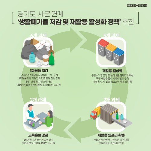 ±¸Ã¼ÀûÀ¸·Î´Â ¡ã»ýȰ ¼Ó Æó±â¹° ¹ß»ý·® ÁÙÀ̱â(1ȸ¿ëǰ Àú°¨) ¡ãÀçȰ¿ë Ȱ¼ºÈ ¡ã±³À°È«º¸ °È ¡ãÀçȰ¿ë ÀÎÇÁ¶ó È®Ãæ µî 4°³ ºÎ¹®ÀÇ 15°³ ¼¼ºÎ °úÁ¦·Î ÃßÁøµÈ´Ù.