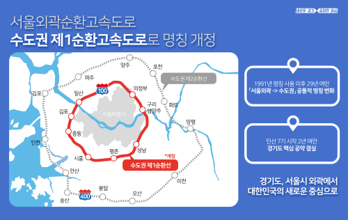 ¹Î¼±7±â °æ±âµµÀÇ ³ë·ÂÀ¸·Î ¿ÃÇØ 9¿ùºÎÅÍ ‘¼¿ï¿Ü°û¼øÈ¯°í¼Óµµ·Î’ ¸íĪÀÌ ‘¼öµµ±Ç Á¦1¼øÈ¯°í¼Óµµ·Î’·Î ¹Ù²ï´Ù. ÀÌ´Â 1991³â ‘¼¿ï¿Ü°û¼øÈ¯¼±’À¸·Î ÁöÁ¤µÈ Áö 29³â ¸¸¿¡ ¹Ù²î´Â °ÍÀ¸·Î, ÀÌ·Î½á °æ±âµµ´Â ´õ ÀÌ»ó ¼¿ïÀÇ ¿Ü°ûÀÌ ¾Æ´Ñ ´ëÇѹα¹ÀÇ Áß½ÉÀ¸·Î¼ÀÇ À§»óÀ» È®¸³ÇÏ´Â ´ÜÃʸ¦ ¸¶·ÃÇÏ°Ô µÆ´Ù.
